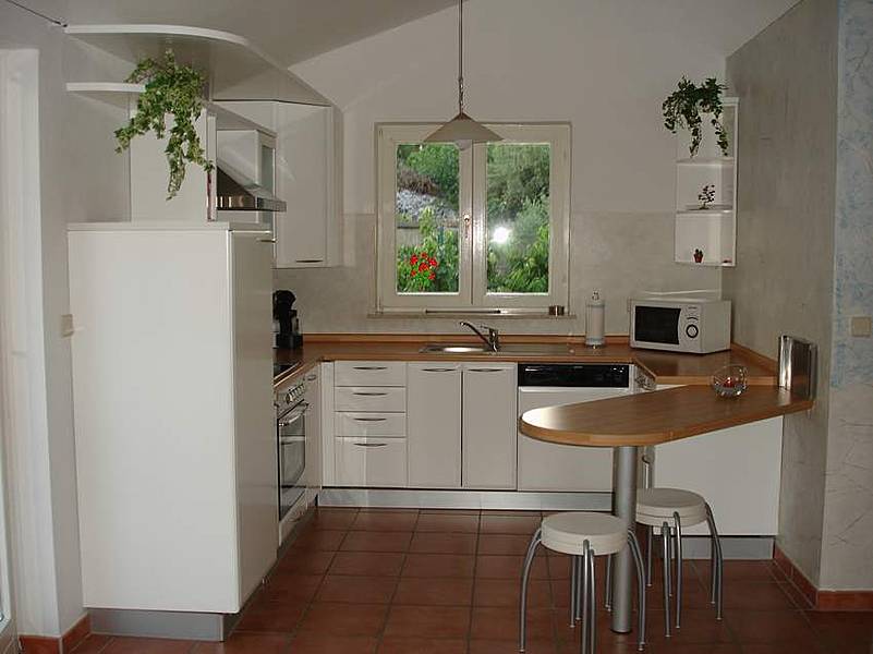 ausgestattet mit Herd, Backofen, Geschirrspülmaschine, Mikrowelle, Kaffeemaschine und Kühlschrank